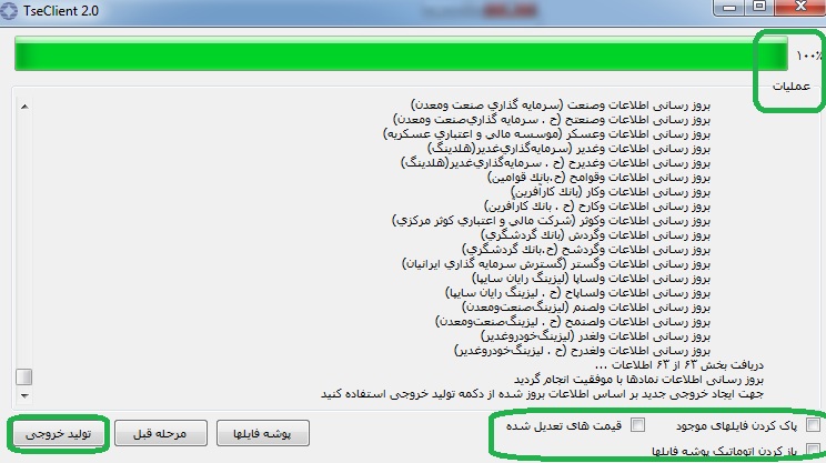 9.پس از دریافت اطلاعات در تصویر بعد با کلیل بر روی دکمه "تولید خروجی" عملیات ایجاد فایل های دریافت شده شروع می شود.این مرحله نیز چند دقیقه زمان می برد.