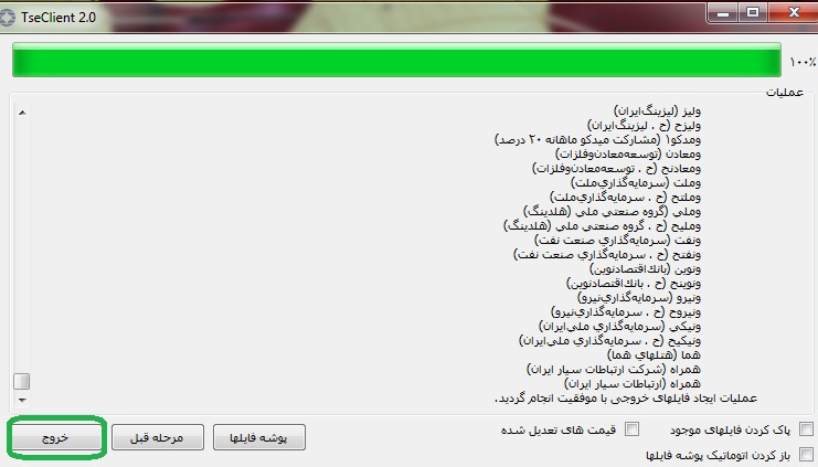 10.در این مرحله فایل های مورد نیاز ما کاملا دریافت و ایجاد شده است.با کلیلک بر روی دکمه "خروج" نرم افزار به کار خود پایان می دهد.