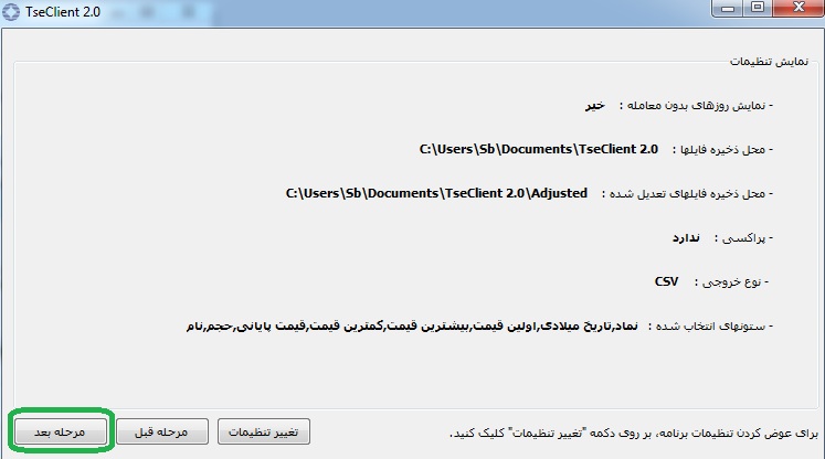 8.تا اینجا تغییر در تنظیمات به پایان رسیده است.با کلیلک بر روی دکمی "مرحله بعد" عملیات دریافت اطلاعات نماد ها آغاز می شود.این مرحله چند دقیقه زمان خواهد برد.