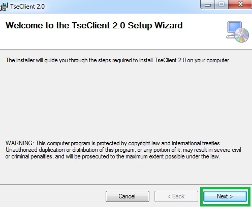 6.در اینجا نصب TSE client پایان یافته است.بر روی آیکون نرم افزار کلیل می کنیم و تصویر پایین باز می شود.طبق تصویر ها مراحل اجرایی شدن را ادامه می دهیم.